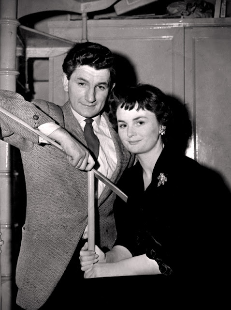 A Charming backstage portrait of TP with his leading lady of over fifty years, May. As May White, she had first caught his eye when they'd catch the same bus on Leinster Road in Rathmines, Dublin. He would have been off to rehearsal at the Abbey while she was working for the Irish broadcaster, Radio Eireann. Fortuitously, he was also a regular visitor there for occasional broadcasts and somewhere along the way introductions were made and they married in May 1955.